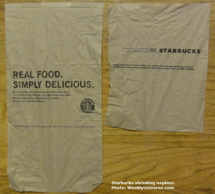 But at least napkins are free -- unlike the many other consumer goods that are being downsized in amount, with no comparable downsized in price. No wonder people are occupying Wall Street!
