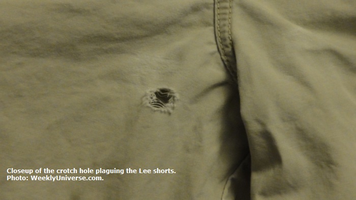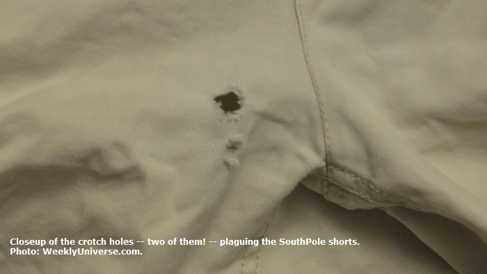 As our photos -- proof that you cannot deny! -- indicate, both Lee and Southpole brand shorts are plagued with weakened crotch areas.