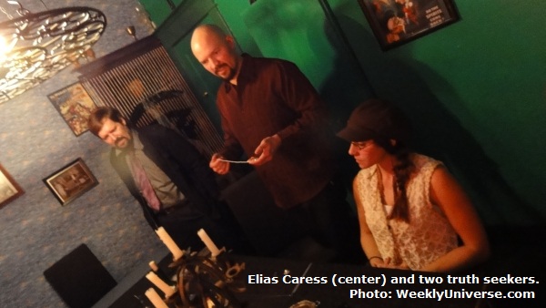 Even more frighteningly, it soon became apparent that Grace wasn't the only spirit present! The tiny lamp would briefly come to life, frantically flickering. The bell was madly ringing, walls banging, orbs floating, when Caress finally declared the séance over. He and McCulley led a final chant of closure, then turned on the main lights.
