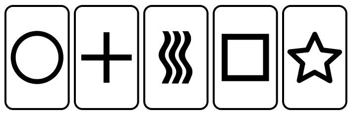 Before any séance, Caress likes to break the "spiritual ice" by having the participants get to know each other. He thus displayed a deck of Zener cards, and explained how they are used to test for telepathy. Each card bears one of five symbols -- circle, cross, waves, square, star -- and the test subject is asked to telepathically read the card held by the person concentrating upon it.