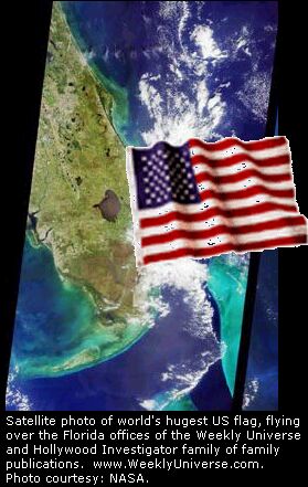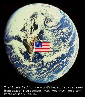 announced: "We don't think the Weekly Universe 'Space Flag'(TM) is too huge. It's huge, but its hugeness is no huger than our love